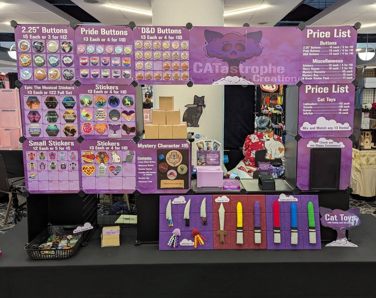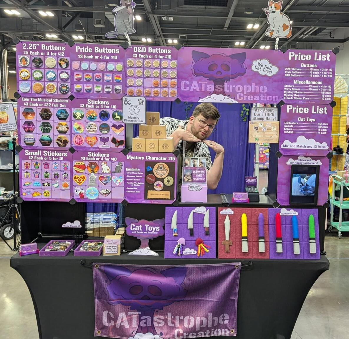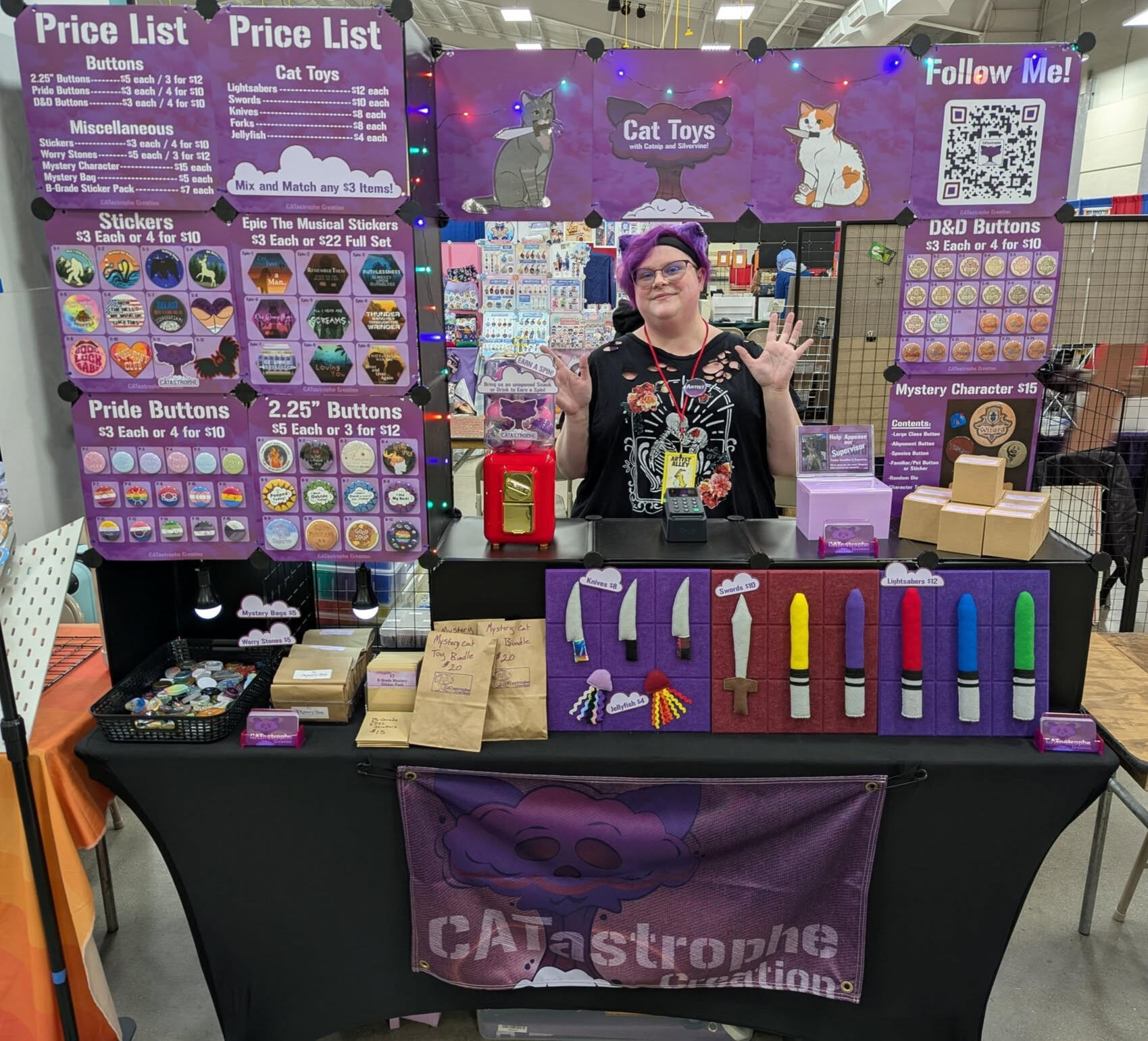 My husband, Code, is my biggest supporter and the best Booth Babe I could ask for. Together, we aim to expand our event presence and share our art with more cats and customers!